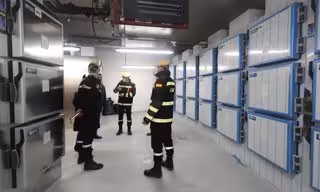 Efectivos de la Unidad Militar de Emergencias (UME) en uno de los pasillos con cámaras funerarias del edificio conocido como El Dónut,
