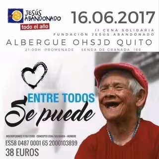 La Fundación Jesús Abandonado de Murcia (España) celebra este viernes, a las 21.30 horas, una cena solidaria en las instalaciones de Promenade (Senda de Granada 155) para recaudar fondos que ayuden a un albergue de Quito.