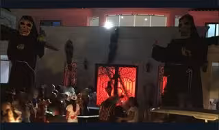 Una casa del exclusivo vecindario El Cid, en el aeropuerto de Mazatlán (estado de Sinaloa), se convirtió en el reclamo de todos lo que celebraban la noche de Halloween. En la entrada de la vivienda daban la bienvenida dos grandes figuras de monjes con una calavera como rostro entre los que estaban colocados cuatro bolsas negras con forma humana simulando ser cuerpos asesinados de la misma manera que lo hacen las organizaciones criminales.