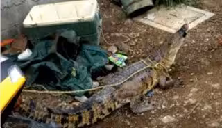 El animal, que estaba atado con una correa como un perro y vivía en el jardín de la casa, fue capturado por la familia varios meses atrás. Los vecinos han alertado a las autoridades por temor a que el reptil escapase e hiriese a alguien.