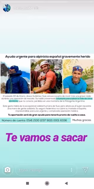 "Aunque Susi (que es como se conoce al alpinista español) cuenta con su seguro federativo, al estar en la Federación Madrileña de Montaña, éste no es suficiente para cubrir la cuantía total de los gastos médicos. Pedimos ayuda urgente para poder traerle de vuelta a casa", ha indicado.