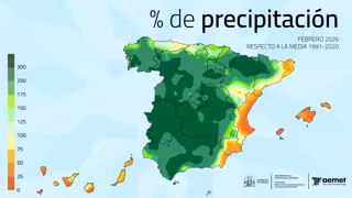 Febrero de 2026 acumuló 123,9 l/m2 de lluvia, casi dos veces y media más de lo normal. - AEMET