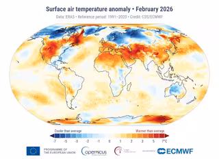 Febrero de 2026 fue el quinto mes más cálido registrado, con 1,49ºC de cambio climático, según Copernicus.
