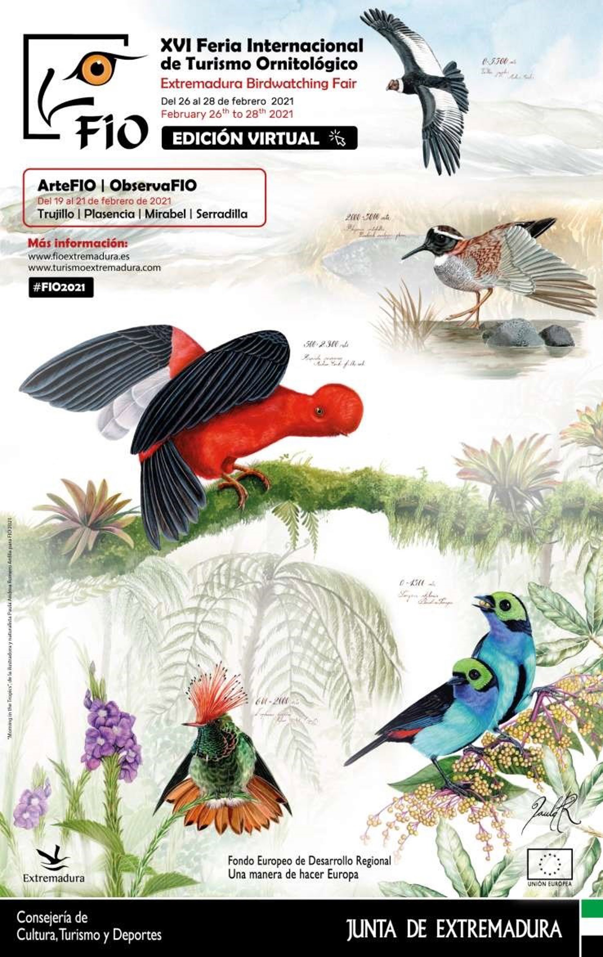 En su 16 edición, FIO, la feria de turismo ornitológico decana de España y la segunda más importante de Europa, tiende un "puente simbólico" entre Extremadura y América, y de hecho, el cartel de este año, realizado ex profeso por la artista y naturalista colombiana Paula Andrea Romero, muestra varias aves singulares de Sudamérica, considerada la región con la mayor diversidad de avifauna del planeta.