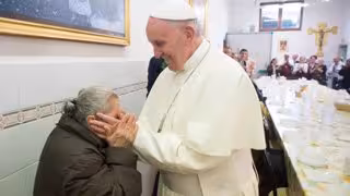 El Papa Francisco durante una comida con personas pobres de Roma.