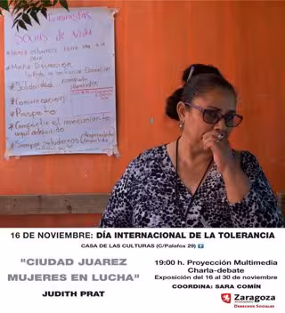 La Casa de las Culturas del Ayuntamiento de Zaragoza contará este viernes, 16 de noviembre, a las 19.00 horas, con la presencia de la fotoperiodista y licenciada en derecho Judith Prat que presentará, en primicia, el trabajo que ha realizado sobre el feminicidio en Ciudad Juárez (México).
