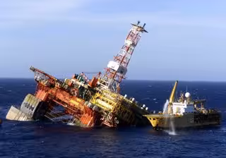 El hundimiento de esta plataforma de más de 30.000 toneladas de peso dejó una mancha oscura en el mar, lo que evidenciaba que el petróleo comenzaría a subir.