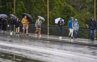 Sevillanos protegiéndose de la lluvia y el viento, protagonistas de la jornada de hoy con avisos naranja y amarillo en gran parte de Andalucía. A 13 de noviembre de 2025, en Sevilla (Andalucía, España). Andalucía vuelve a estar bajo la influencia de inten - María José López - Europa Press
