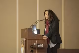 Los profesores y alumnos asistentes a la entrega de premios han podido disfrutar de la conferencia de la doctora Librada sobre 'La Construcción de la Universidad Contigo, Universidad Compasiva', para sensibilizar y concienciar sobre la importancia de los cuidados, el acompañamiento y la atención de las personas al final de la vida.