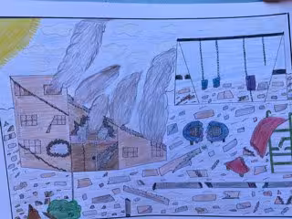 Según ha explicado la ONG, varios de los niños han realizado dibujos que ilustran los "incesantes bombardeos" que han vivido en Gaza, con bocetos que muestran misiles destruyendo casas, aviones de combate sobrevolando parques infantiles y barrios, y la vida en el exilio.