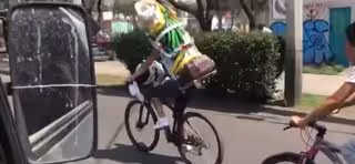 El ciclista cargaba con una figura gigante de San Judas Tadeo en su espalda mientras viajaba a toda velocidad por las calles de Ciudad de México cuando una distracción hizo que se accidentara y su santo quedara hecho añicos.