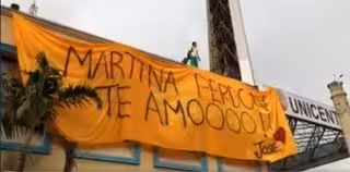 En el video, que ya se ha hecho viral en las redes sociales, se puede observar como el hombre -que firma la pancarta como José- grita: "¡Martina, por favor; Martina, perdón!", mientras mira a todos los lados.