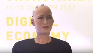 Sophia es la creación más avanzada de la empresa Hanson Robotics. Cuenta además con dos cámaras que le permiten reconocer la expresiones faciales y los movimientos de las personas, los cuales procesa para imitarlos.