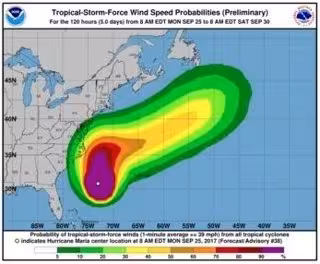 El Centro Nacional de Huracanes estadounidense (NHC) ha publicado este lunes un pronóstico que prevé que el huracán 'María' se convertirá en tormenta tropical en la noche del martes o ya el miércoles después de debilitarse, aunque afectará a la costa oriental de Florida y hasta Nueva Inglaterra.