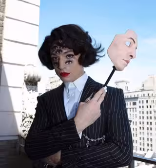 A eso agregó una máscara de madera que utilizó para cubrir su cara en el momento de ingresar a la alfombra roja del Museo Metropolitano de Nueva York.