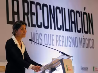 "Reconciliación es la unidad con Dios y las bendiciones que él derrama... Ha llegado la hora de abrazarnos todos, no pretendemos pensar que vamos a olvidar, pero sí transformar el dolor en nuestra fuerza, oscuridad en luz, memoria en sabiduría, el duelo en fe. Colombia justa en paz y determinada a renacer y la emancipación de todos", planteó en la parte final de su intervención.