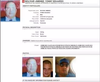 Yonny Bolívar Jiménez estaba siendo buscado por la Interpol desde el pasado mes de febrero, cuando la organización emitió una orden de captura internacional contra él a causa del asesinato de Adriana Urquiola, intérprete del lenguaje de señas en Venevisión.
