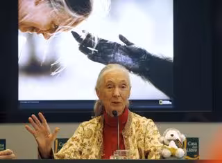Jane Goodall es una primatóloga pionera que cuenta con más de 50 años de investigación sobre la conducta de los chimpancés en el Parque Nacional de Gombe, en Tanzania, y que tras abandonar su carrera, se dedica a defender a éstos y otros animales en peligro de extinción.