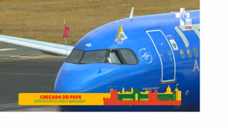 El avión del Papa tras aterrizar en Lisboa.