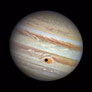 La imagen, tomada por el telescopio espacial Hubble, muestra a Júpiter con una gran mancha negra que parece que al planeta le ha salido un gran ojo de cíclope de 15.000 kilómetros de diámetro. Pero, como siempre, los efectos visuales siempre tienen una explicación más racional y desde la NASA explicaron que el efecto óptico fue creado por la sombra de la luna Ganímedes proyectada en la superficie de Júpiter.