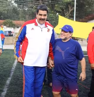 El exfutbolista argentino Diego Armando Maradona aprovechó su viaje a la capital de Venezuela, Caracas, para participar en una "pachanga" de fútbol amistosa con el presidente venezolano Nicolás Maduro.