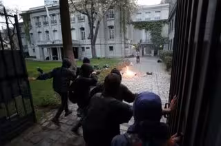 La convocatoria de organizaciones sociales para demandar justicia tras confirmarse la muerte del joven Maldonado --quien estuvo desaparecido cerca de dos meses tras participar en una protesta indígena por el pueblo mapuche argentina-- fue disuelta por la policía cuando encapuchados lanzaron palos, piedras y objetos con fuego a uno de los jardines de la embajada.