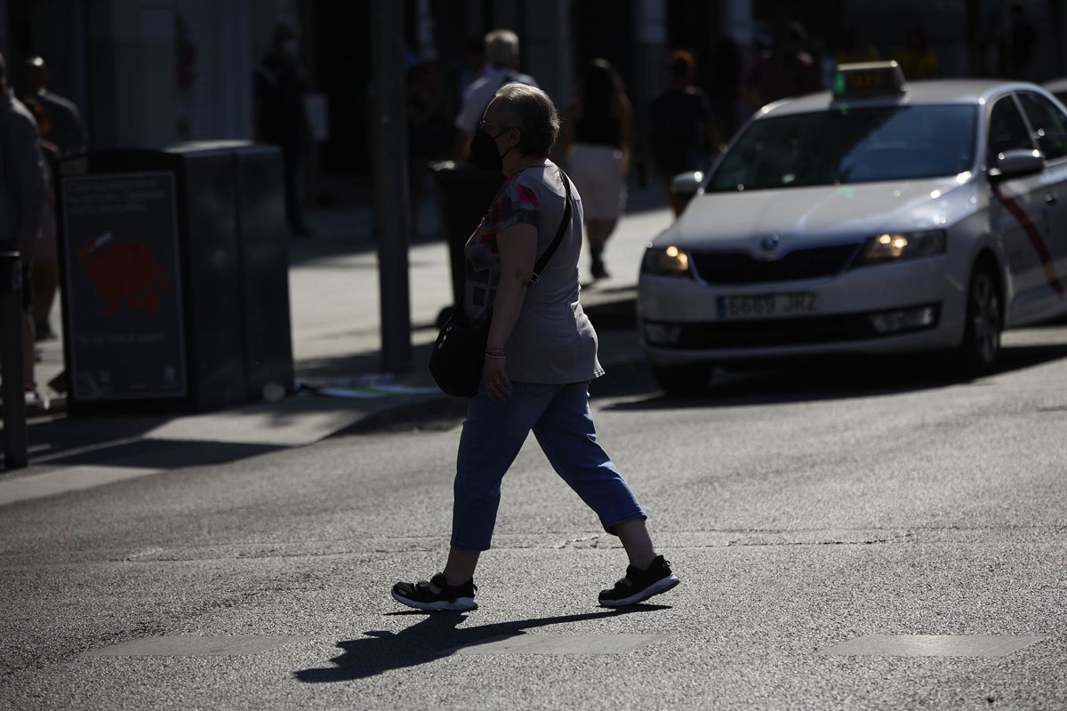 Archivo - Una persona cruza un paso de cebra, a 12 de julio de 2022, en Madrid (España). La segunda ola de calor del verano podría alcanzar temperaturas máximas de hasta 47 grados centígrados (ºC) en algunos puntos de la península. En Madrid, está previst - Jesús Hellín - Europa Press - Archivo