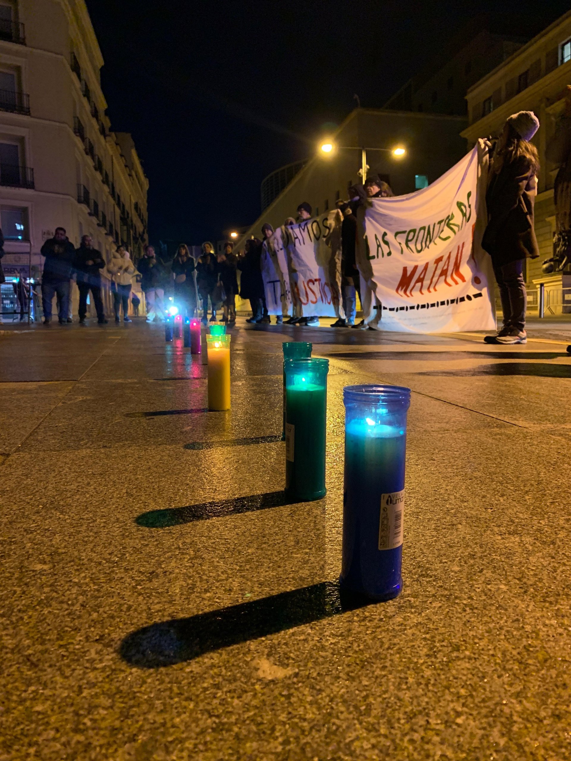 El acto se ha celebrado a las 7.20 de la mañana, la misma hora en la que se produjo la tragedia y, además de colocarse velas en recuerdo a las víctimas y darse lectura a los nombres de 13 de los fallecidos --uno permanece sin identificar--, los asistentes han emitido un audio en el que se escucha, según los organizadores, a los agentes de la Guardia Civil que intervinieron y los disparados realizados al agua donde se encontraban los migrantes intentando llegar a la orilla. Los participante han desplegado además pancartas en los que se podía leer 'Las fronteras matan' y 'No olvidemos Tarajal Justicia'.