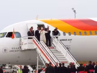 Así, hace una década, en plena crisis económica, en la ceremonia de bienvenida en el aeropuerto de Barajas, ante autoridades españolas de todos los ámbitos, no quiso dejar de acordarse de muchos jóvenes, que "miran con preocupación el futuro ante la dificultad de encontrar un empleo digno, o bien por haberlo perdido o tenerlo muy precario e inseguro".