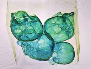 Los cuatro cráneos escaneados por un escáner de rayos X