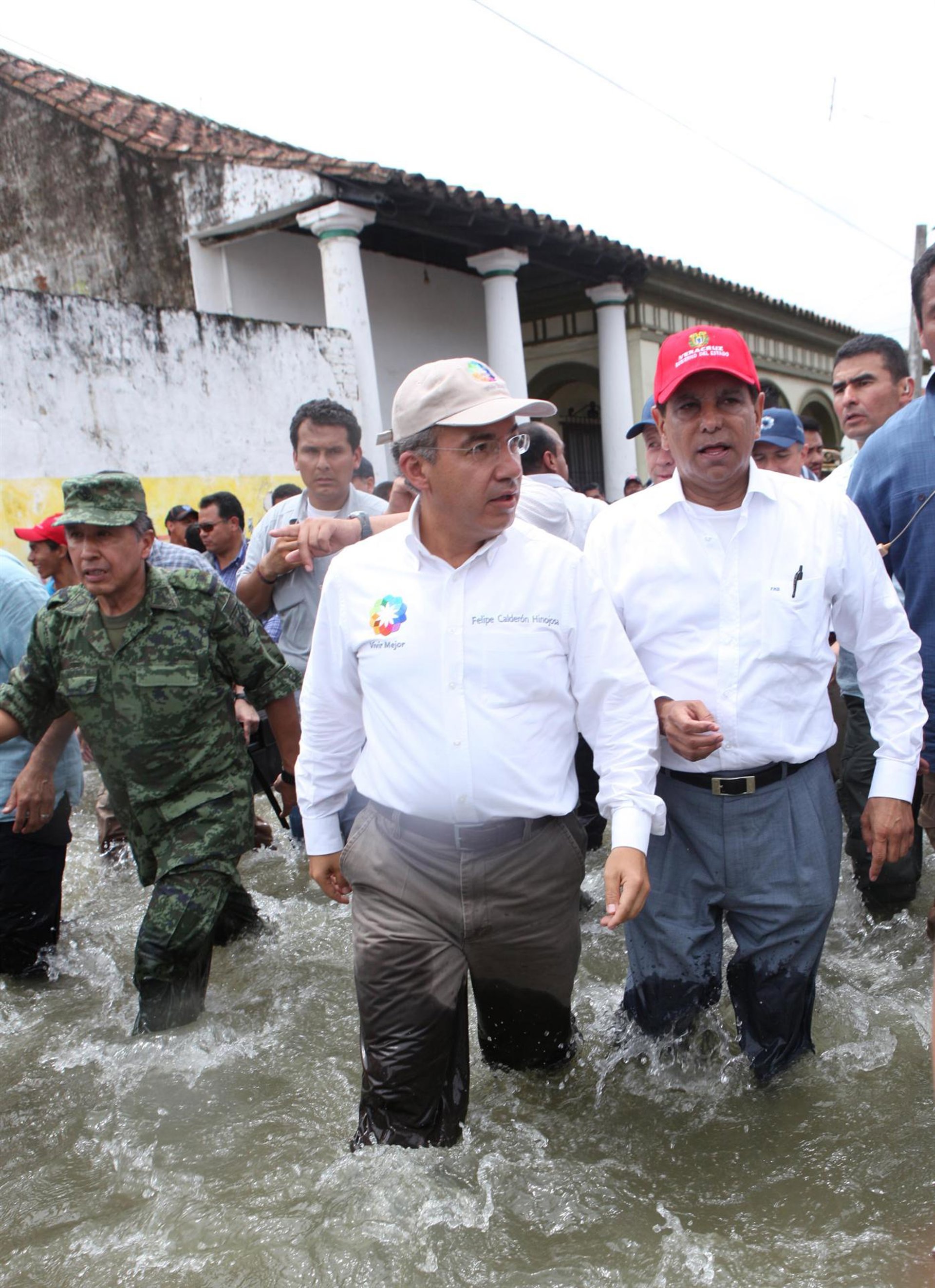 El presidente mexicano, Felipe Calderón, visita las zonas inundadas en Veracruz.