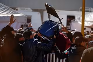 En el vídeo se observa cómo la caravana lucha contra una fuerte línea policial mexicana.