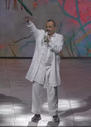En seguida sonaron las estrofas de 'Libre ya de amores', ante la sorpresa de los presentes, que llenaron el auditorio creando un coro apoyado por los propios coristas de Bosé que, igual que él, aparecieron vestidos de blanco.