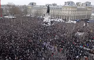 Más de un millón y medio de personas marchan este domingo hacia la plaza de la Nación de París en repulsa por los atentados yihadistas que se han cobrado la vida de 17 personas esta semana en Francia, entre ellas 12 empleados de la revista satírica 'Charlie Hebdo', y a favor de la libertad de expresión sin violencia.