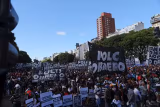 Miles de personas se han manifestado este miércoles en la capital de Argentina, Buenos Aires, en una protesta convocada por organizaciones sociales y partidos izquierdistas contra la cumbre de líderes del G20 que se celebrará entre el viernes y el sábado.