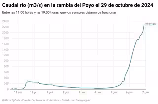 El Ministerio ha recalcado que ya se ha instalado un sensor provisional en el barranco del Poyo dado que la escollera sobre la que estaban fijados los anteriores ha quedado destruida por la DANA. "La CHJ trabaja para que los sensores estén operativos y toda la información disponible lo antes posible. Durante el tiempo en el que los datos no han estado disponibles, la CHJ ha remitido los datos a todos los que la han solicitado", ha remarcado.