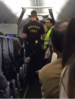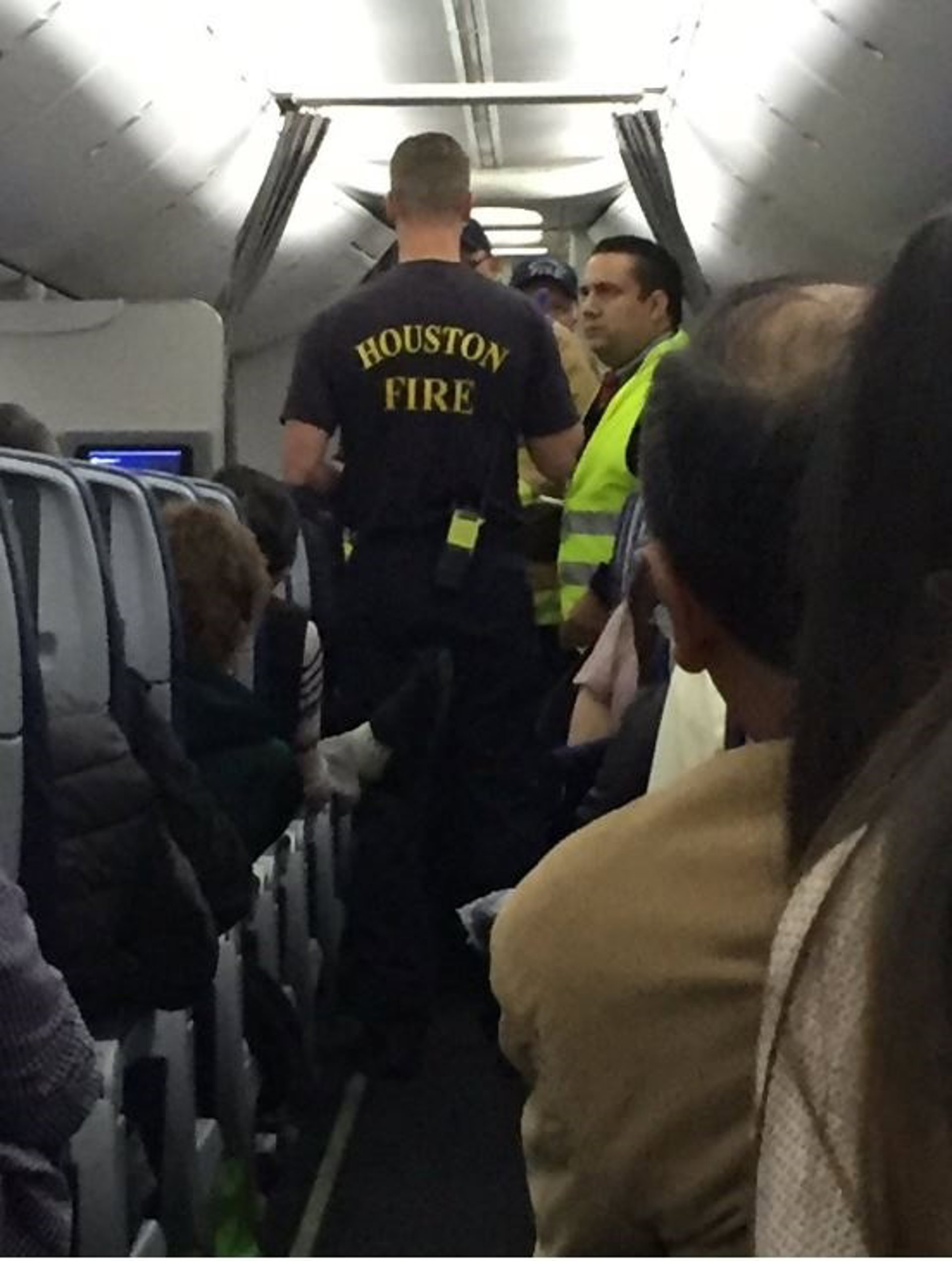 Fernando Del Río, un pasajero del mismo vuelo, envió a través de su cuenta en Twitter varias fotos que muestran la situación que se registró a bordo una vez que el personal de emergencia ingresó en el avión en el aeropuerto de Houston.