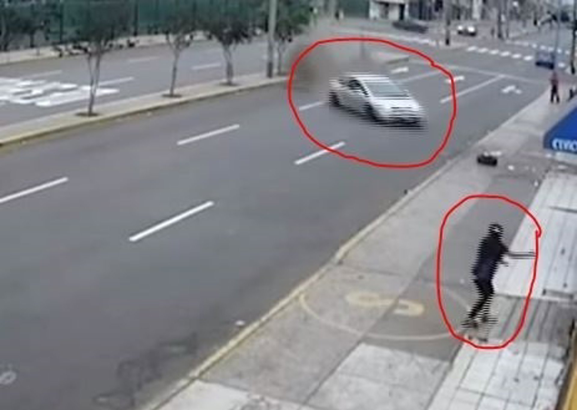 En las imágenes se ve a una mujer, identificada como Sandra López Fuster, caminando tranquilamente por la acera desde su trabajo, cuando de repente se dio cuenta de que un coche salido del lado opuesto de la carretera se dirigía descontrolado a gran velocidad directamente hacia ella.