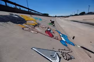 El canal del Río Bravo en Ciudad Juárez acoge un mural en el que aparece ridiculizado el candidato republicano a la presidencia de Estados Unidos, Donald Trump. Situado junto al Puente Negro, el dibujo ocupa el lugar en el que muchos migrantes mexicanos esperan la oportunidad de cruzar de manera irregular de México a Estados Unidos.