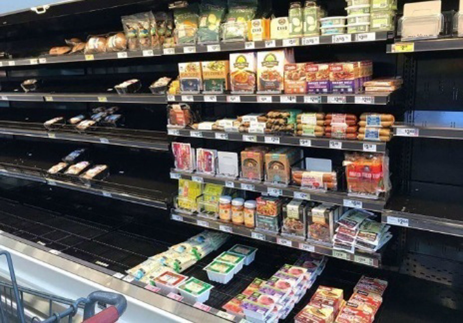 Una imagen de este suceso comenzó a hacerse viral y la gente rápidamente creó memes sobre el asunto. La foto fue tomada por una usuaria de Twitter quien notó que en un estante donde ya no quedaba prácticamente nada, permanecían intactos los productos para veganos. La tuitera publicó lo siguiente: "Even in a disaster no one wants the vegan food." (Incluso en un desastre nadie quiere comida vegana).