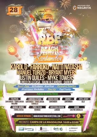 Natti Natasha, Karol G, Farruko, Bryant Myers, Justin Quiles, Manuel Turizo, Myke Towers, Lírico en la Casa, Rauw Alejandro y Darkiel estarán este domingo, 28 de julio, en la campa de La Magdalena de Santander en la primera edición del Reggaeton Beach Festival.