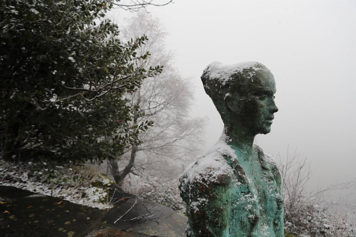 Archivo - Una estatua durante la nevada en Pedrafita, a 20 de noviembre de 2025, en Lugo, Galicia (España). El marcado descenso de las temperaturas en los últimos días, unido a las lluvias anunciadas, configura un escenario propicio para que la nieve haga - Carlos Castro - Europa Press - Archivo