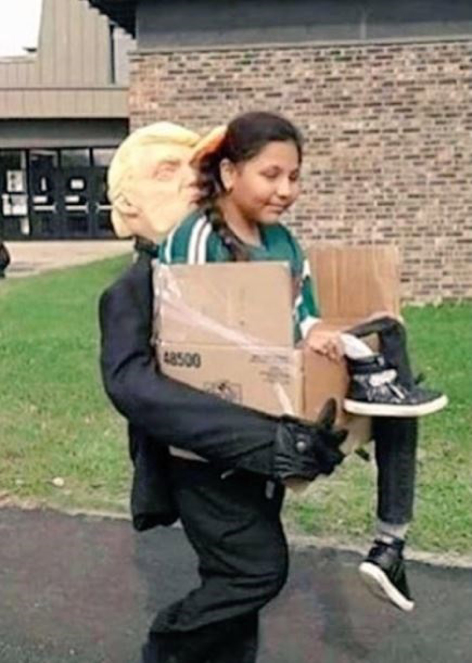 Para los estadounidenses la fiesta de Halloween es muy importante, y los colegios no se quedan ajenos a esta celebración. Por eso, esta joven mexicana decidió disfrazarse de una migrante deportada por Donald Trump.