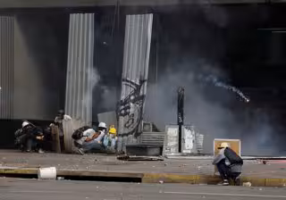 Cubriéndose con barricadas hechas de escombros, manifestantes, en su mayoría jóvenes, devolvían las lacrimógenas y lanzaban piedras y cócteles molotov a los uniformados, que intentaban despejar la principal autopista de la capital.