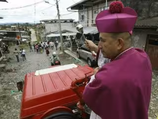 Desde un camión de bomberos adornado con globos, el obispo católico Monseñor Rubén Darío Jaramillo Montoya roció con agua bendita diversos puntos de la ciudad colombiana de Buenaventura en los que se han cometido asesinatos, tiroteos u otros hechos violentos.