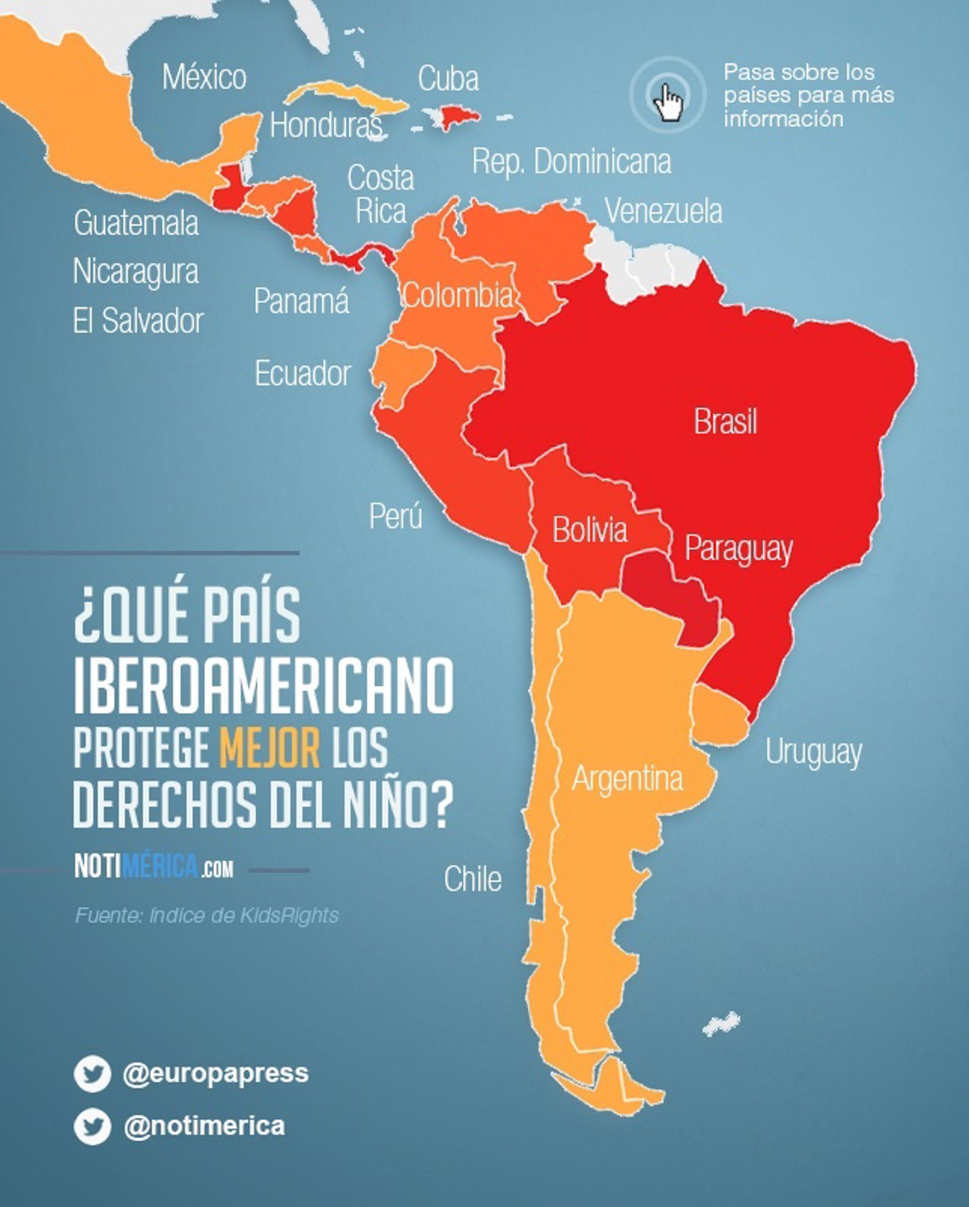 Así, según la clasificación, Cuba es el país con el índice de protección de los derechos del niño más alto (0,887), situándose en el puesto número 19 del ranking general. A este le siguen Chile (0,872) en el puesto 29, Argentina (0,864) en la posición 33 y Uruguay (0,856) en el número 33.