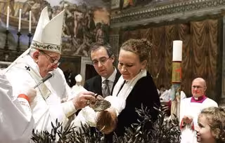 Francisco hizo el signo de la cruz en la frente de cada niño, después de que los padres pronunciasen en voz alta su nombre, en una ceremonia que ya se ha convertido en una tradición anual del primer domingo del año después de la Epifanía. Se trata de una costumbre que inició San Juan Pablo II en 1989 para recordar el día en el que Jesús fue bautizado en el río Jordán.