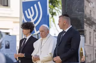En la segunda jornada de su viaje a este país, el Papa se ha encontrado con algunos miembros de esta comunidad, entre ellos algunos supervivientes del Holocausto, en la plaza Rybne, en un barrio tradicionalmente judío de Bratislava donde antes había la sinagoga. Ante esa sinagoga destruida por el régimen comunista en 1969 para hacer un puente, Francisco ha dicho: "Aquí, ante la historia del pueblo judío, marcada por este agravio trágico e indescriptible, nos avergonzamos de admitirlo: ¡cuántas veces el nombre inefable del Altísimo ha sido usado para realizar acciones que por su falta de humanidad resultan inenarrables!".