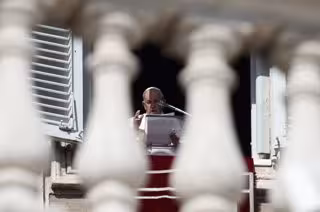 06 February 2022, Vatican, Vatican City: Pope Francis delivers the Sunday Angelus prayer from the window of the Apostolic Palace overlooking St. Peter's Square in Vatican City. Photo: Evandro Inetti/ZUMA Press Wire/dpa - Evandro Inetti/ZUMA Press Wire/d / DPA