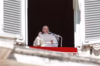24 October 2021, Vatican, Vatican City: Pope Francis delivers the Angelus prayer at St. Peter's Square from the window of the Apostolic building. Photo: Giuseppe Lami/ANSA via ZUMA Press/dpa - Giuseppe Lami/ANSA via ZUMA Pres / DPA